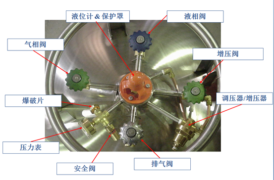 然后加入液氮后測(cè)重,一立升液氮重為0.8公斤加上空罐的重量得出滿罐時(shí)的重量,減去使用過后現(xiàn)有秤重,就是應(yīng)補(bǔ)充的的容量。可以用專用的液位尺測(cè)液位,另一種簡便的方法是找一根干凈的木棒插入液氮內(nèi)數(shù)秒鐘,將木棒迅速取出暴露在空氣中,插入液氮的部份因溫度低而結(jié)成白霜,很易容檢測(cè)罐內(nèi)液氮的存量。