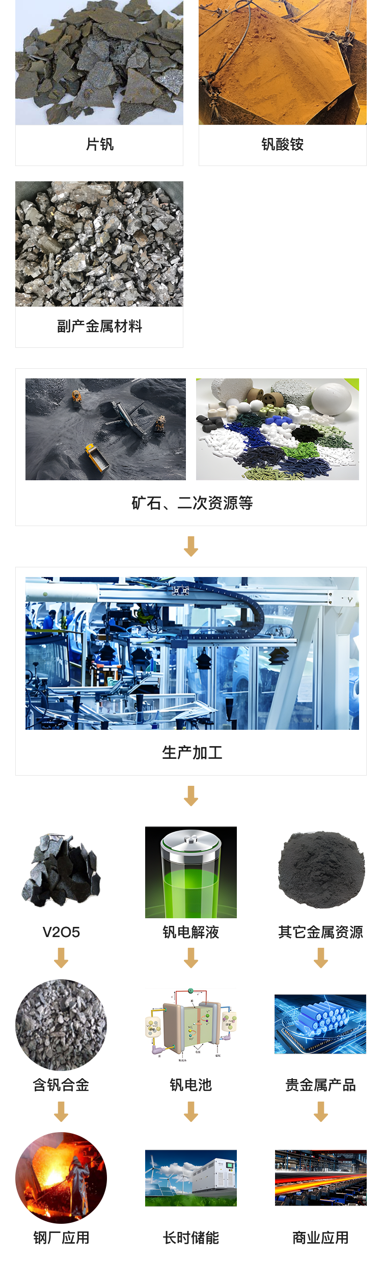 萬循能源(老撾)有限公司基于國內外長時儲能成為剛需、釩電池未來5年復合增長率約為41%的機會和釩資源傳統材料到新能源材料的客觀需要的大背景下成立。金屬資源化項目采用“配料→焙燒→多級浸出→凈化→雙沉淀→產品凈化機深加工→三廢達標處理”先進的濕法冶金工藝技術,以多途徑含釩資源為原材料,通過先進、安全、環保、高效的生產設備,年生產重要應用場景的含釩原材料(釩酸銨、片釩)1500t及副產其它金屬材料400t。