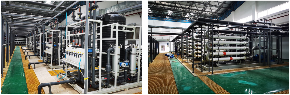 項(xiàng)目工藝技術(shù)成熟,運(yùn)行可靠,出水符合《城市污水再生利用-工業(yè)用水水質(zhì)》(GB/T19923-2005)中敞開式循環(huán)冷卻水系統(tǒng)補(bǔ)充水標(biāo)準(zhǔn)和《城市污水再生利用城市雜用水水質(zhì)》(GB/T18920-2002)中的綠化、車輛沖洗、道路清掃等標(biāo)準(zhǔn)。RO濃縮液采用“高壓NF+高壓RO+高級(jí)氧化”組合處理工藝,處理后的濃液回焚燒廠用于爐渣冷卻,實(shí)現(xiàn)園區(qū)污水“零排放”。
