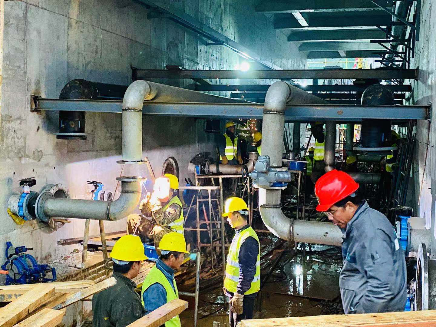 為保證工作順利推進,在現場施工條件復雜、工期緊張、施工難度大的情況下,集團領導多次親臨現場指導工作,統籌規劃,協調各方,帶領項目部同事因地制宜,因時制宜,有序安排設備材料進場。在與土建工作存在交叉作業時,全體項目部同事不畏艱苦,積極創造工作面,團結協作,奮勇直前,順利實現業主的節點計劃。