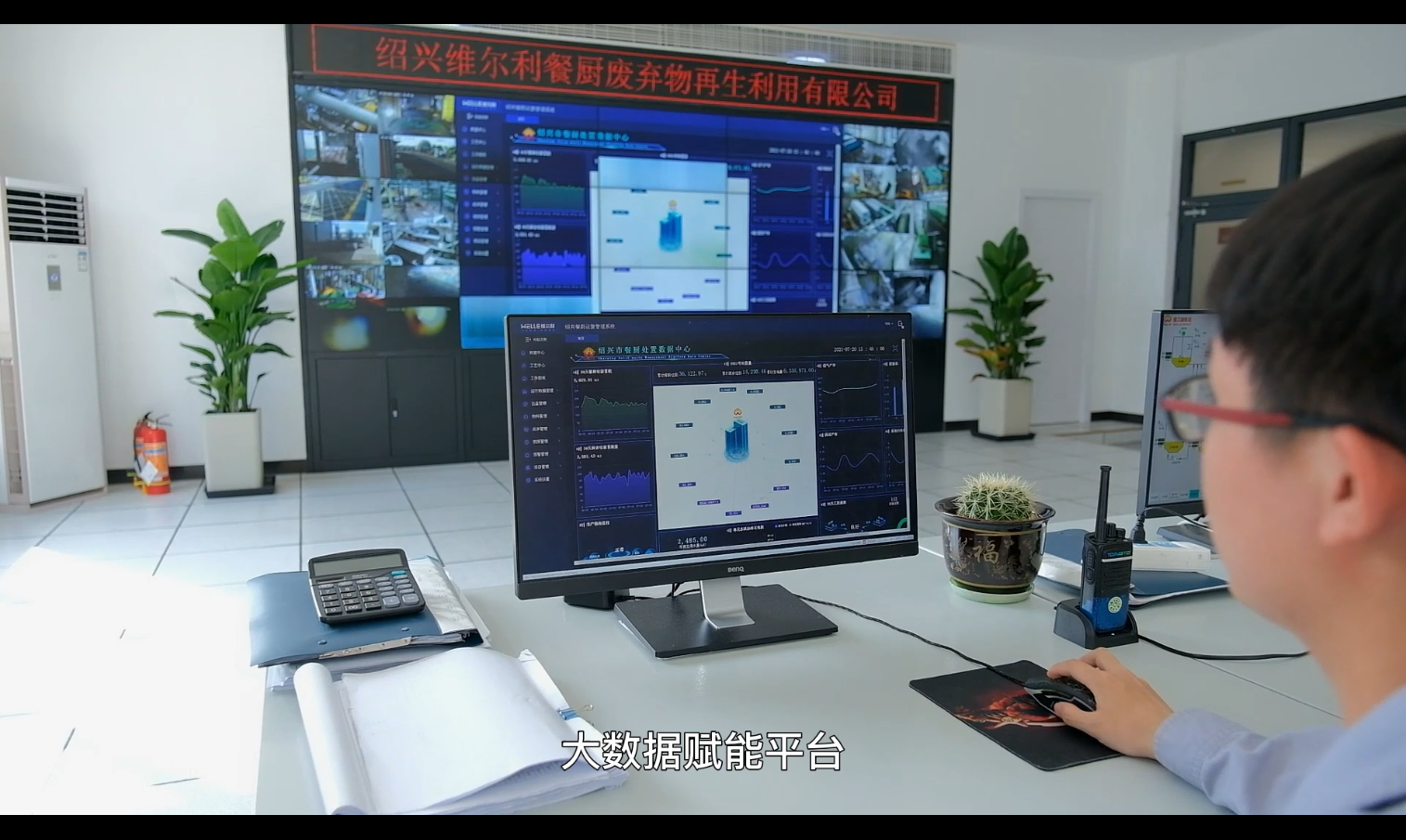 項目使用由維爾利集團建設的全自動化、智能化、數字化的運營管理系統,通過中控指揮中心的餐廚垃圾全生命周期大數據賦能平臺,可對餐廚垃圾處理全過程涉及的人員、收運車輛、設備、生產系統和各類事件進行集中管控,并在指揮中心的大屏實時顯示收運車輛和處置廠區的情況。